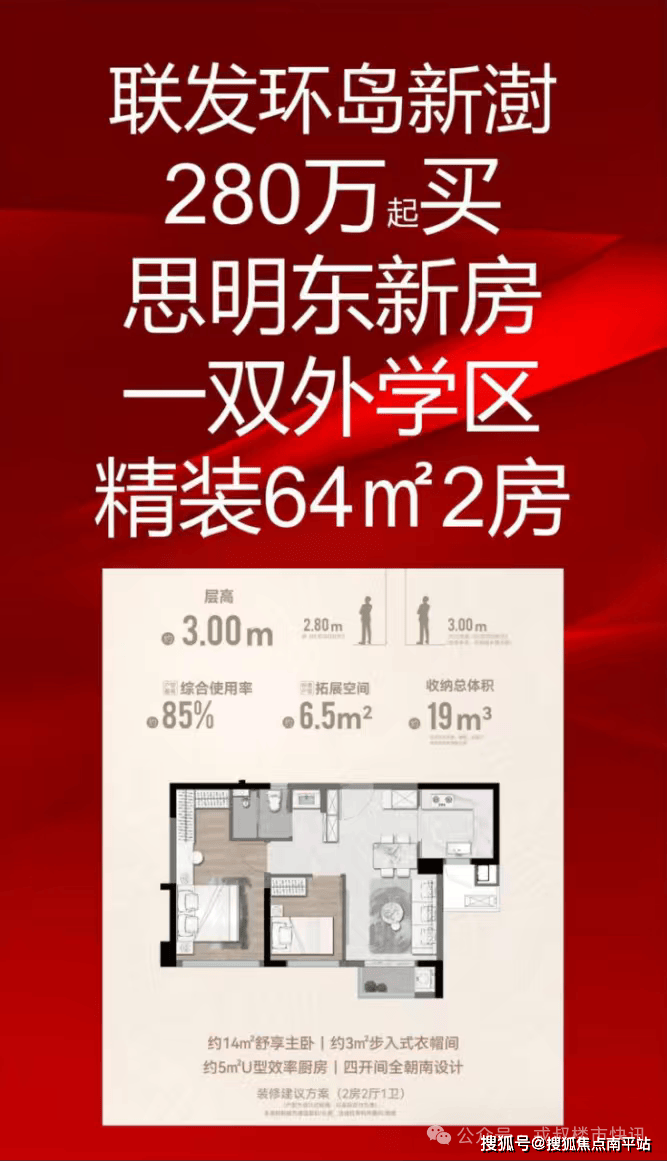 思明前埔新盘—联发环岛新澍,传最新消息,64㎡学区房精装2房总价280万起。