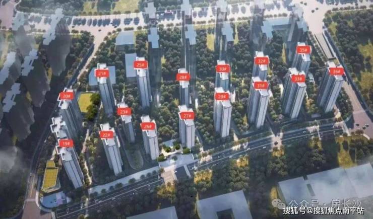 项目二期 容积率约2.7,绿化充足,兼具都市便利与生活静谧。 21-26层高的住宅,采用错位点式布局,形成了大中芯景观。