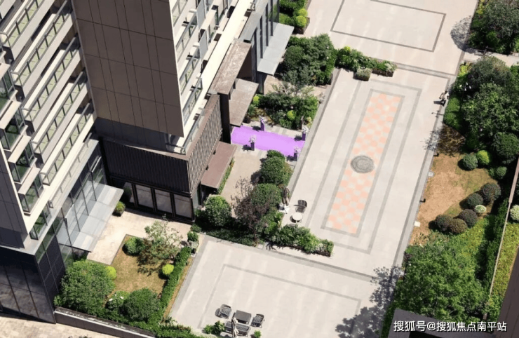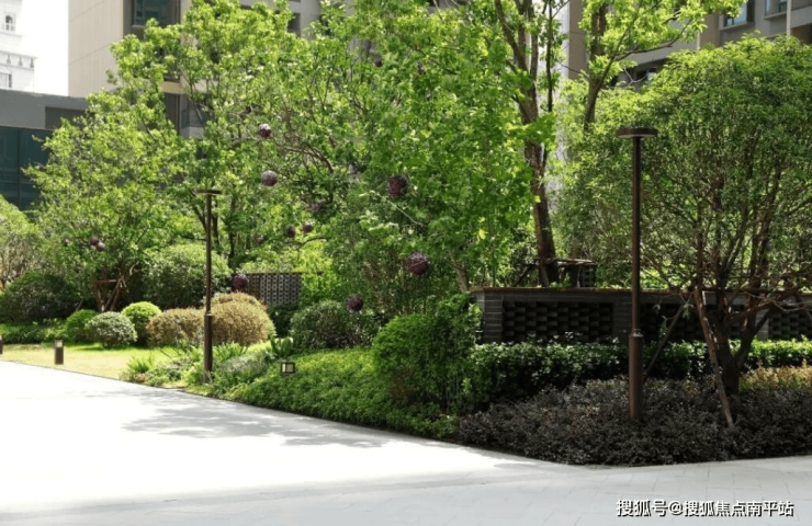 诗意园林:绿洲庭院内,乔灌错落,织就绿意归家步道;台地式园林设计,巧妙引景入园,繁华生机尽收眼底