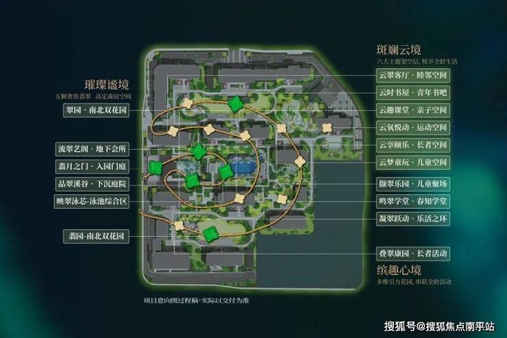 创新灵感源于19世纪美国“波士顿翡翠项链”的设计理念,通过形似“项链”的公园绿道。桂月云翠园以“翡翠项链”为母本,通过立体串联的景观手法,将归家的建筑景点逐一串联,配备下沉庭院+地下会所、泳池综合区、南北两大超5000㎡主题花园,营造高浓度生活体验。