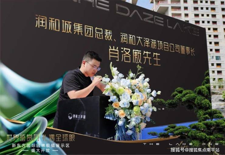 一段极具东方神韵的中国舞表演后,润和城集团总裁兼项目公司董事长肖洛廒登台致辞。肖洛廒首先对莅临现场的嘉宾、媒体朋友及业主们表示热烈欢迎,并发表了饱含深情的讲话: “润和大泽湖的园林设计,就是放到未来50年后、100年后,都绝不会过时。”接着说道,“从每一株精心挑选的罗汉松,到跨越千里的英德石,从蕴含东意西境的庭院布局,到融入现代生活美学的互动空间,每一处细节都凝聚着我们润和人对永恒之美的追求与对未来的深刻思考, 对于这个项目,我们的投入是不设上限的,因为我们深知,只有这样,才能创造出真正经得起时光洗礼的作品。”