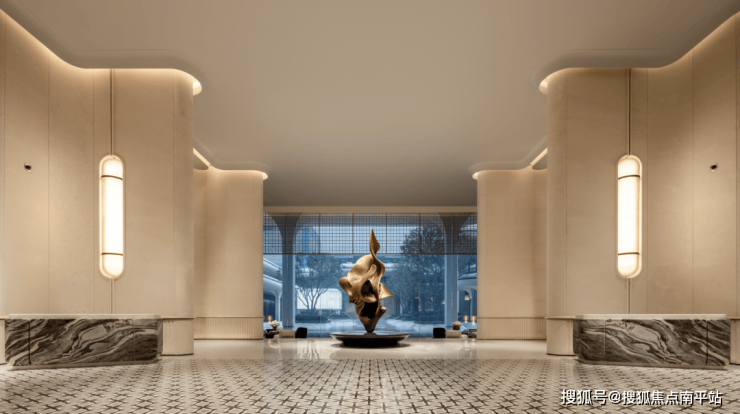 为此项目采用了全面“超纲”的配置:立面采用 “定制弧形玻璃+高端铝板+高端陶板”组成单元式幕墙体系,成本较常规项目增加数以亿计。