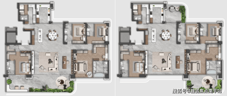 ▲ 户型⑤建面约300㎡户型(左偶右奇)