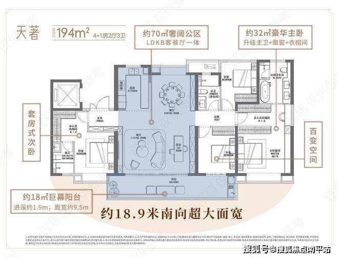·五开间朝南的顶配格局,瞬间把生活质感拉上新高度!关键是,全屋南向面宽豪横达约18.9米,重塑尺度想象,阳光不是洒进来,而是磅礴涌入。