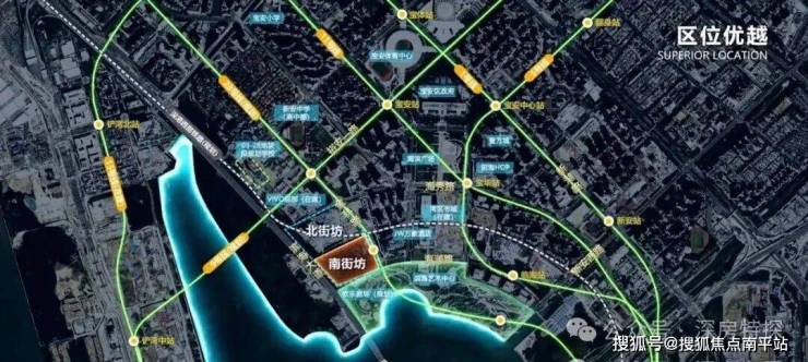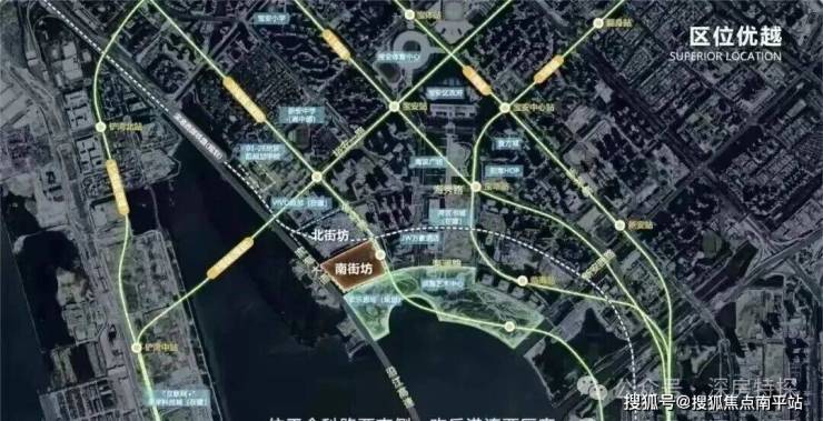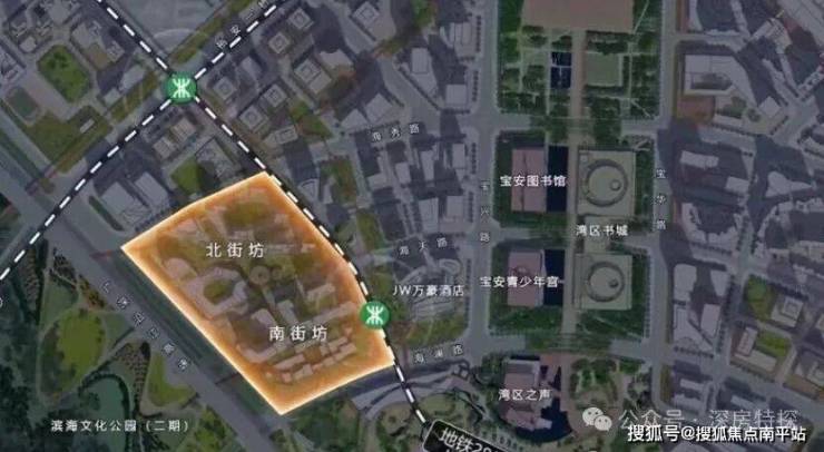 南街坊地块位于宝安中心区,紧邻沿江高速,坐拥湾区书城、湾区之光摩天轮、青少年宫、图书馆、滨海演艺中心、欢乐剧场等市级文化地标,与腾讯全球总部企鹅岛仅一水之隔。