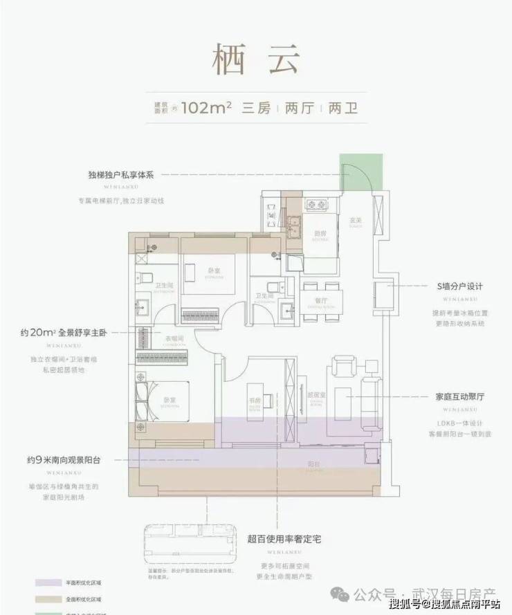 文澜序用建面约120多平的面积就实现了三代宅建面约160平的大平层豪宅中才能达成的居住体验!