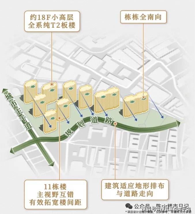 全盘采用点式布局,9栋楼主视野互错,有效拓宽楼间距。更绝的是全系纯T2板楼!约18F小高层!栋栋全南向!