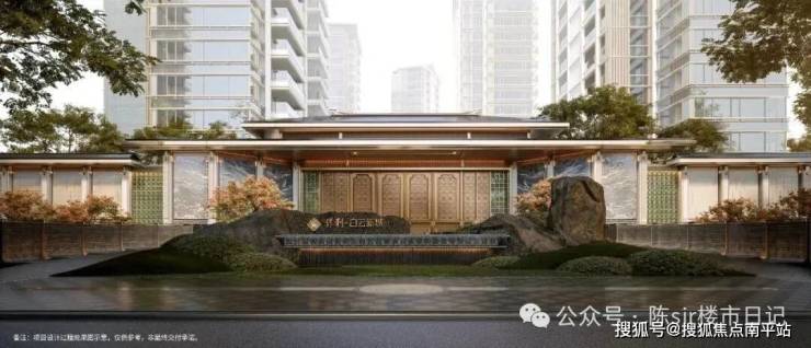 从效果图来看,保利这次直接把“王府”搬来了,在保利天瑞的东方美学基础上再升级:重檐顶+对称形制,既有古建的庄重,又有当代豪宅的通透气场,气场堪比保利天瑞的门头尺度。