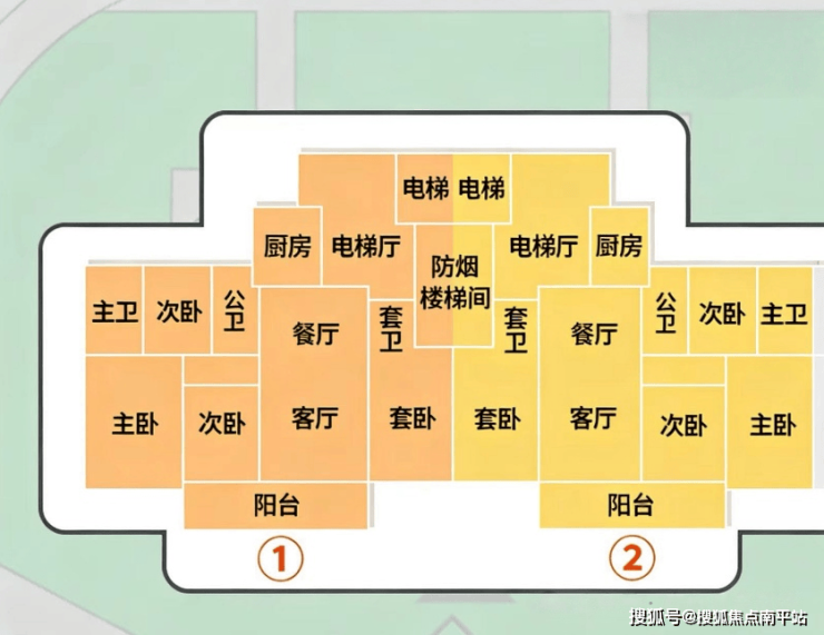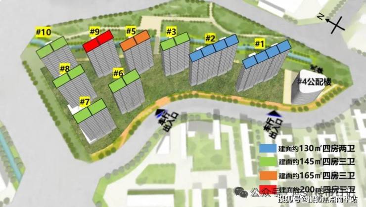 起步是130㎡四房两卫,分别位于#1栋与#2栋。