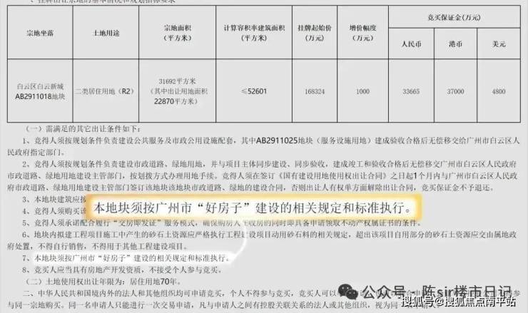 保利白云新城项目,恰恰是广州第一宗在土地出让公告中,就明确写入“好房子”建设标准的地块。