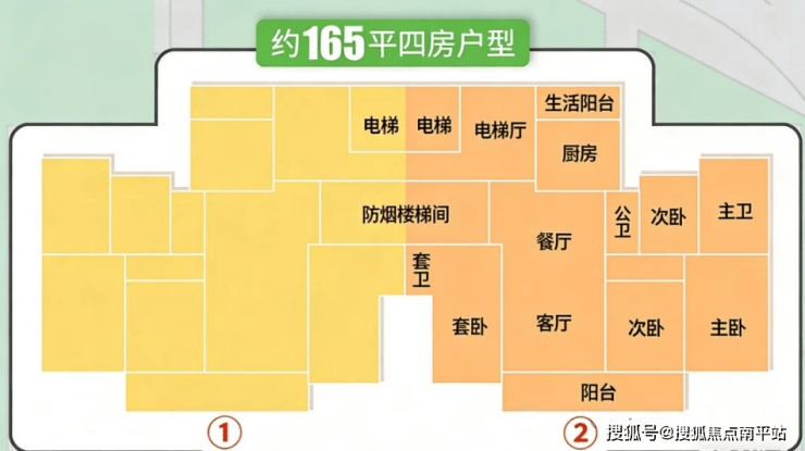 再大一点则去到165㎡四房三卫,只有#5栋两条梯腿。