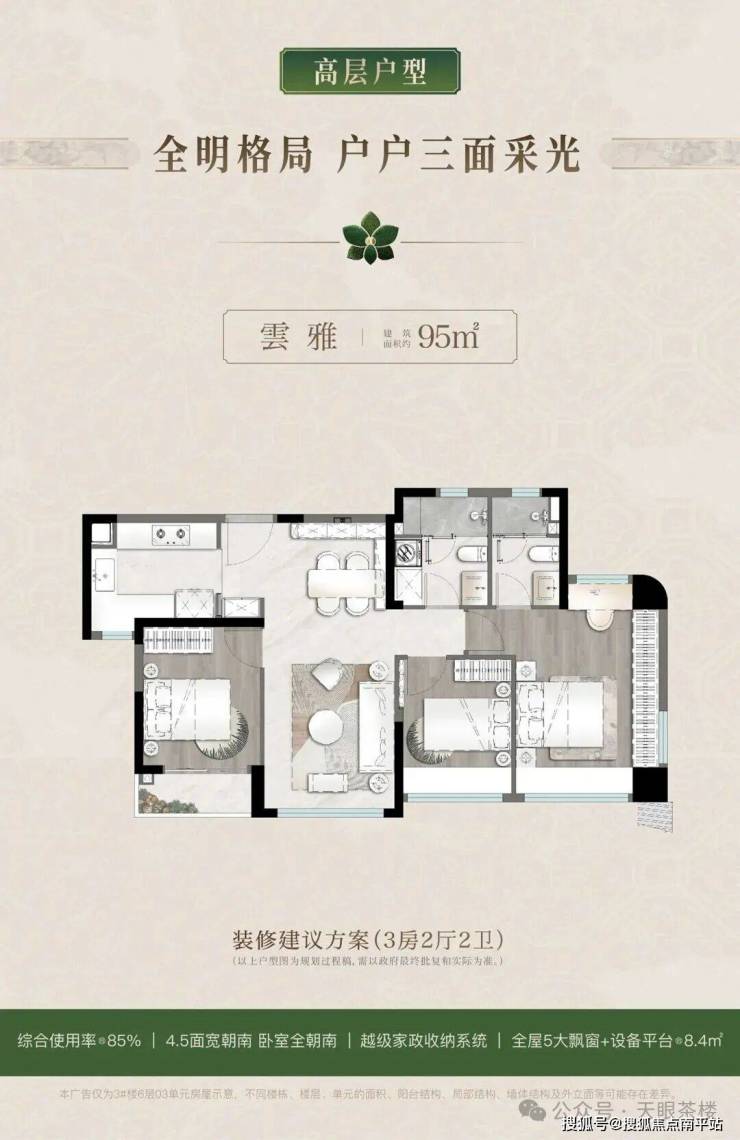 观雲所剩房源不多, 约95㎡户型 特别抢手,我们以其 5号楼 为例来分析。