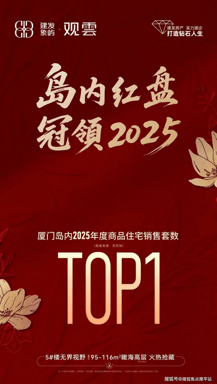建发象屿·观雲于2025年推出,是厦门东渡十年一地的新盘,也是2025年岛西唯二新规盘(飘窗可自拓+首现四代宅), 荣膺2025年厦门岛内新盘销售套数TOP 1!