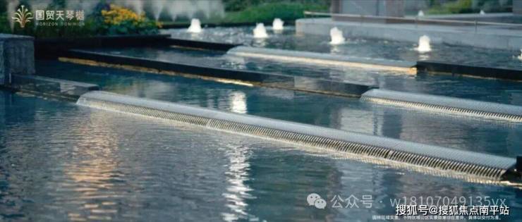 最令人惊艳的莫过于是社区大面积艺术水景,营造一种度假、沉浸式的生活体验。要知道水景后期维护成本更高,没有实力的房企并不敢轻易尝试。