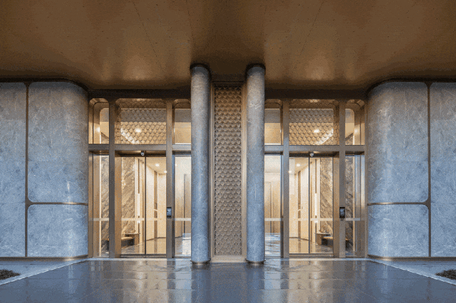 这份仪式感延伸至精装净高约5米入户大堂,双入户大堂配置+全石材打造+智能入户系统,质感彰显。