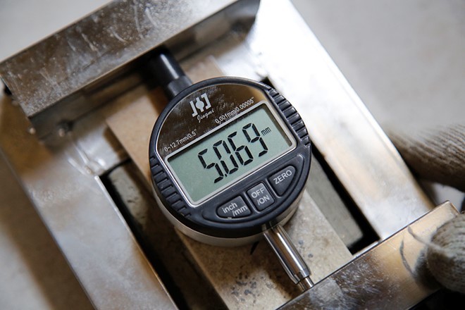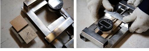 在此测试环节,我们做了两项测试,其一是可以在任何现场使用的位移测试仪器来挤压两块贴合好的瓷砖,看看两块瓷砖在受力之后多长距离发生脱离现象,以此来断定这款瓷砖胶的粘性和韧性是否优秀。