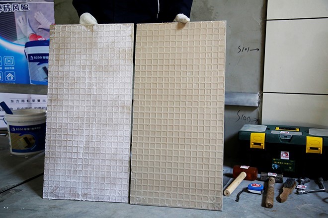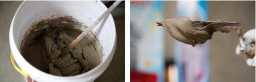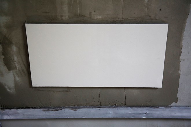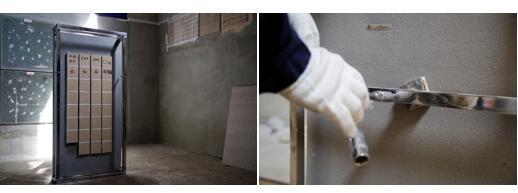 其二为瓷砖背面处理。先批刮一层,而后再厚涂一层瓷砖胶于其上。