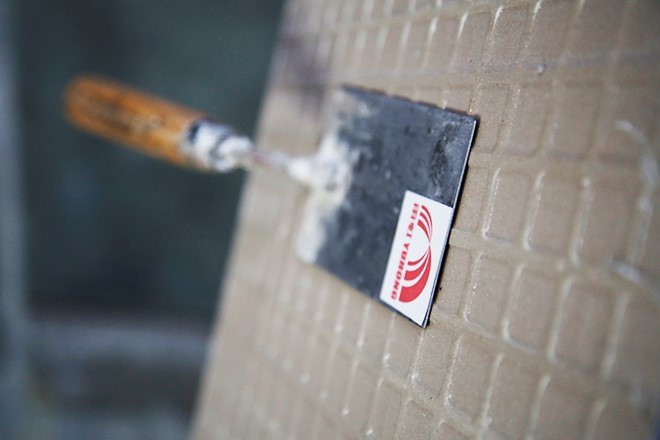 操作过程严谨有序:先涂B200贴砖伴侣 ,干燥后用CL100瓷砖胶贴砖