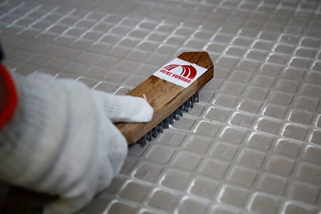 首先:用铁刷清理干净瓷砖脱模剂(白色部分)