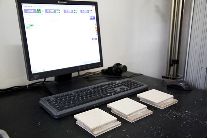 左为测试仪器和测试用的瓷砖道具,右为测试实拍
