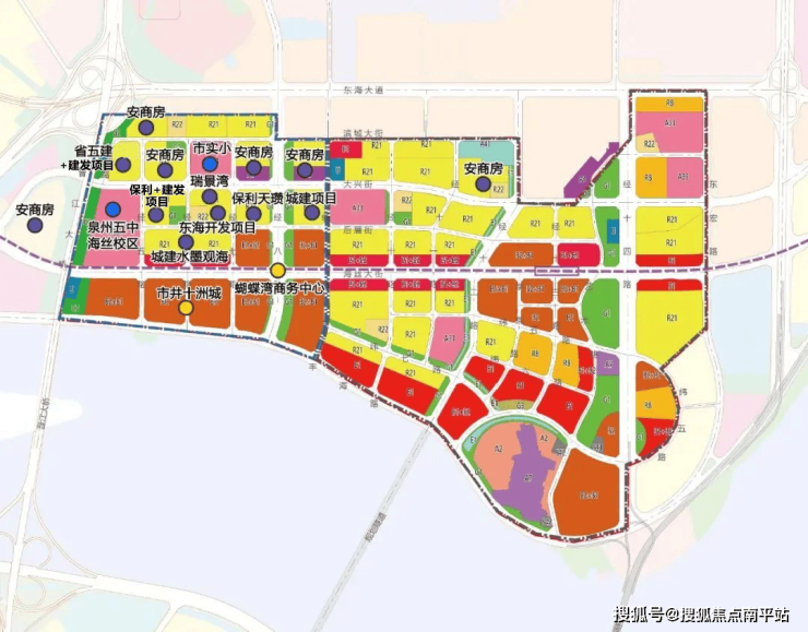 东海中央活力区规划面积约 4515 亩,功能定位为以跨境交易、金融服务、数字经济、时尚文创为主导,公共服务及宜居生活为支撑的复合型滨海中央活力区,公建配套地块占比近 50%。
