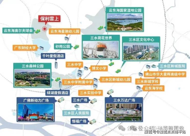 景观休闲配套:三水森林公园,荷花世界、云东海湿地公园、芦苞温泉;