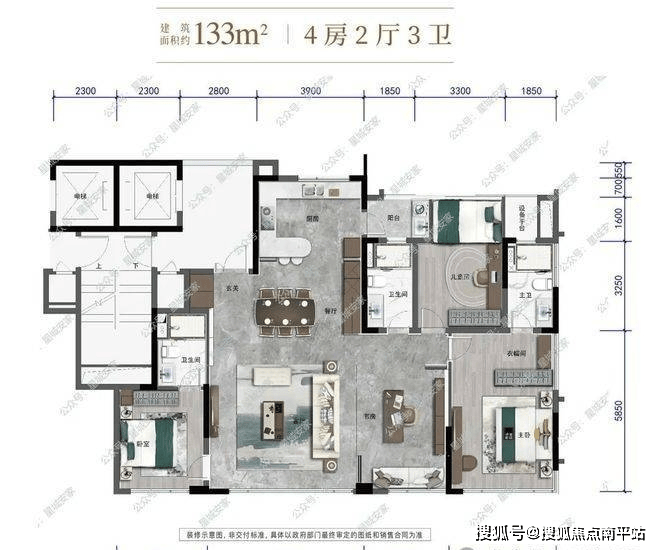 户型一:建面约133㎡,4房2厅3卫
