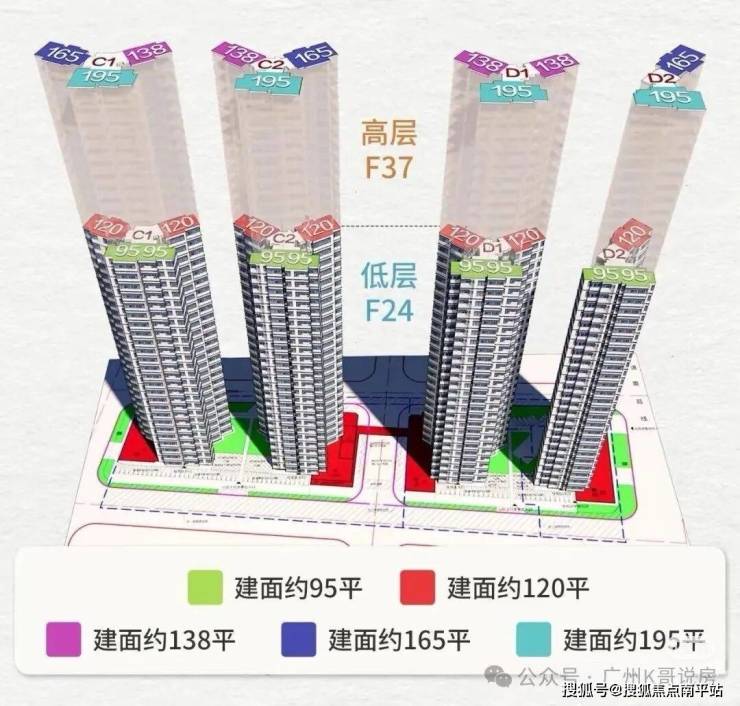项目规划有4栋37层高层住宅楼,住宅楼都分为高区和低区两部分。
