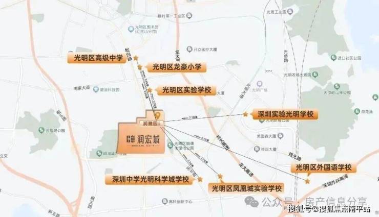 润宏城周边3公里范围内汇聚了深圳市光明区实验学校、深圳小学光明曙光学校、深圳市光明区凤凰城实验学校等众多的优质教育配套。