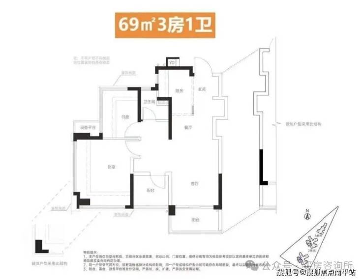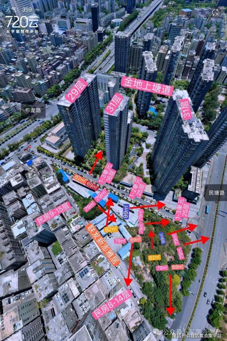 项目最大亮点就是地块容积率仅为2.5,限高80米,总层高16-25层。得房率比较高,小户型低门槛,不过也需要利弊权衡,本身地块小又呈三角形,也不太合适做住宅地块。周围视野遮挡多。好在设计朝向基本都是错开