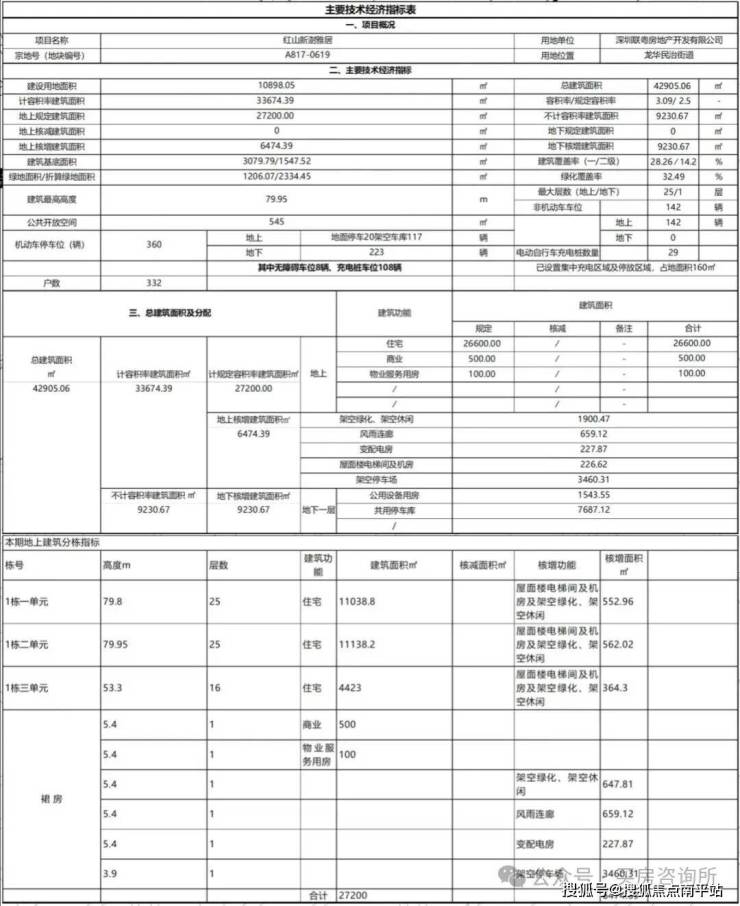 项目1栋1/2单元2梯6户,1栋3单元2梯4户设计,地下室有1层,规划360个车位,车位比1:1.08。