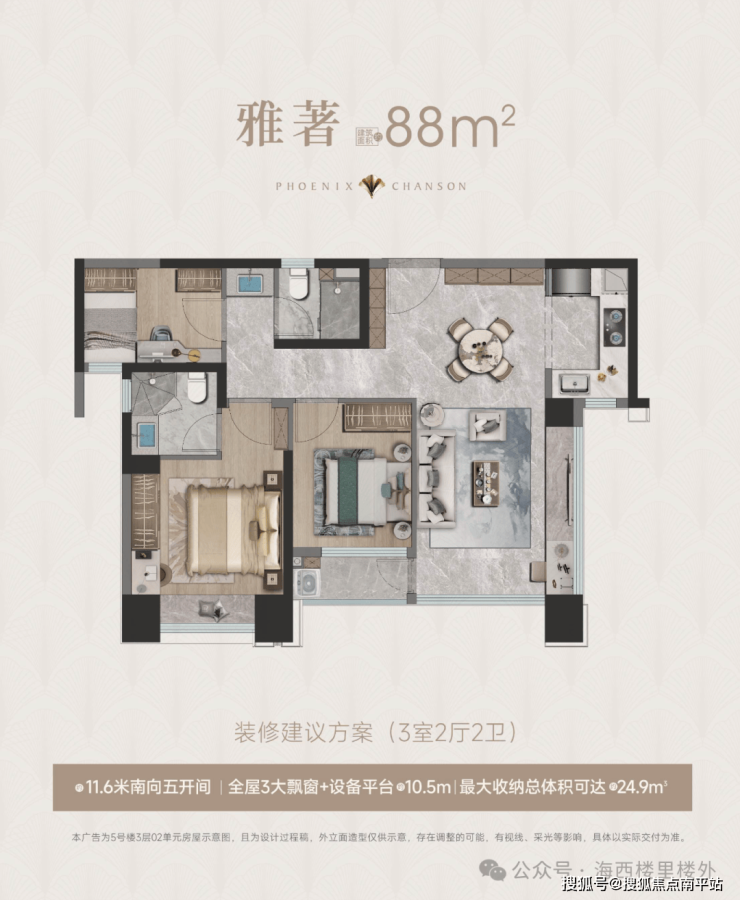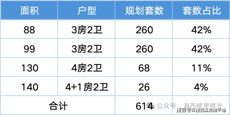 高层产品:88平3房2卫,260套;99平3房2卫,260套