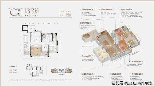 实得面积约130㎡(含电梯厅),堪比老规148㎡大四房