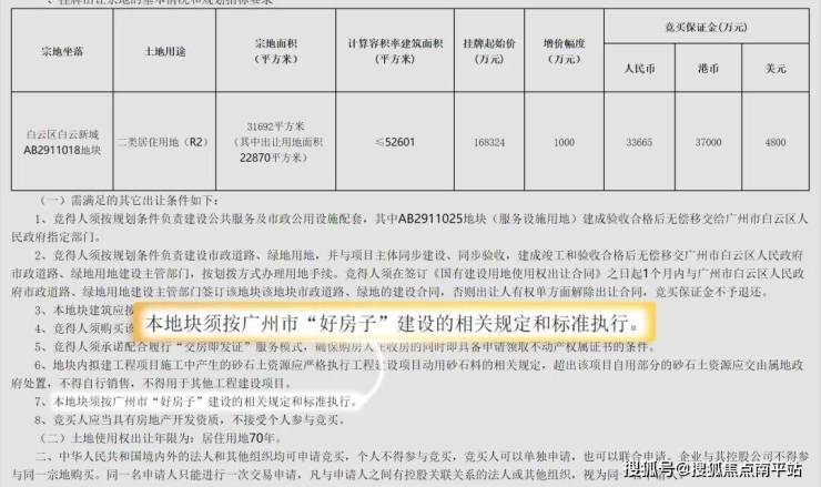保利白云新城项目,恰恰是广州第一宗在土地出让公告中,就明确写入“好房子”建设标准的地块。