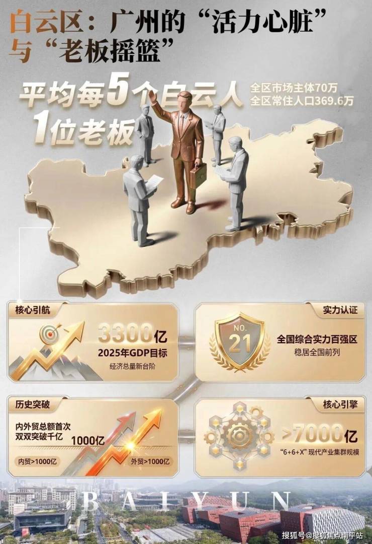 如今,整个白云市场主体突破70万户,占全市1/6——算下来,平均每5个白云人里(369.6万常住人口),就有1位是老板。