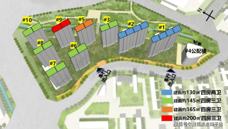 其次是145㎡四房三卫,这是项目最小面积的双套房户型,分别位于#3栋、#6栋、#7栋和#10栋,货量最大。
