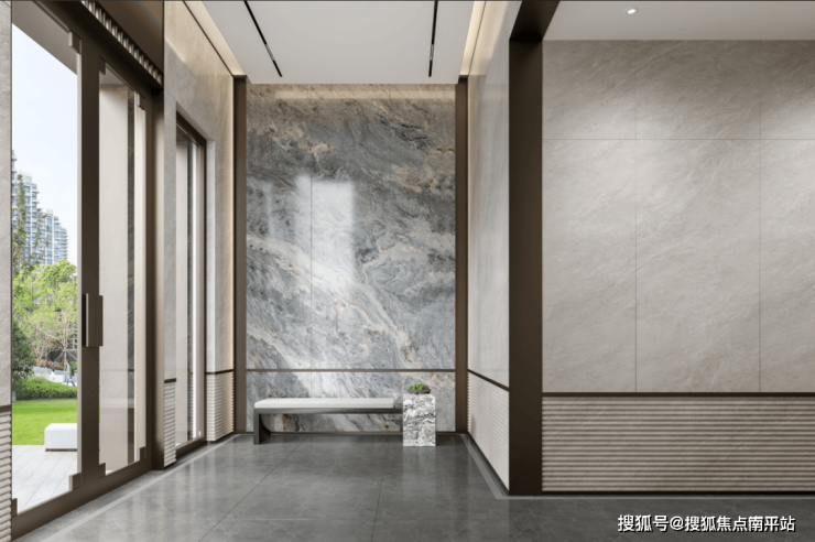 建投·誉山院首创性的运用天津洋楼的形式美感,通过深灰色真石漆+香槟金铝板+LOW-E玻璃打造现代美学立面,呈现更高品质、更高规制、更亲人的细节感受。金属铝板在阳光下熠熠生辉,整体效果流畅活泼又极具美感。特别注意的是铝板线条在转角处用了圆弧做法,对应传统文化中谦逊,和睦,藏锋守拙等优秀品质。