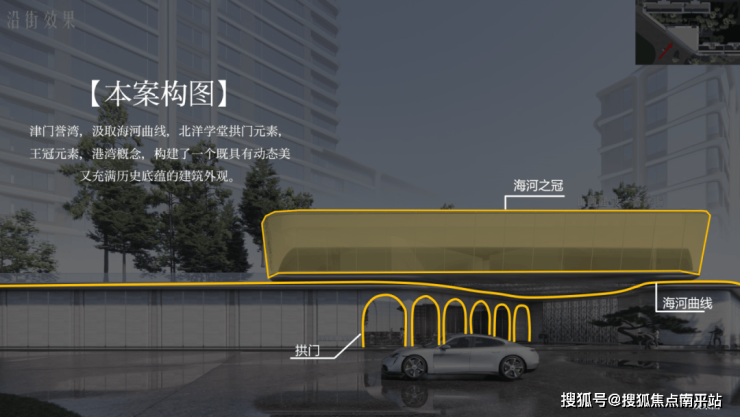▲建投·誉河院巧妙融合北洋大学堂拱门元素