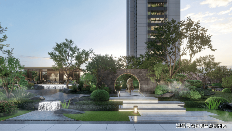 ▲建投·津樾府项目“鱼跃龙门”主题园林