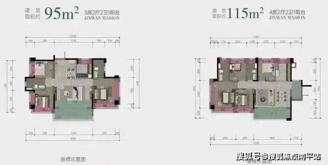 建面约95-115㎡三至四房 宽幕高层;