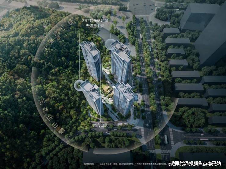 最终将楼栋排列 南向偏西约10°,大部分楼栋采用 270°转角落地窗,实现 户户南向无遮挡观山。