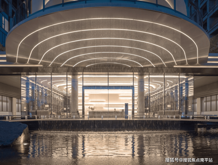 无边泳池以开阔尺度营造归家动线的视觉高潮。水面与周边绿地、架空层和休憩空间自然衔接,既满足运动与休憩功能,也承担情绪缓冲与社交聚合的角色,把“轻度假”的感受常态化地嵌入居民的归家路径与社区生活之中。