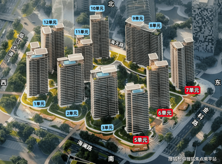5单元:21层2梯2户、层高3.3m、约260㎡4房4卫 (三套房南北双阳台) 顶楼约500㎡大平层 (带泳池)