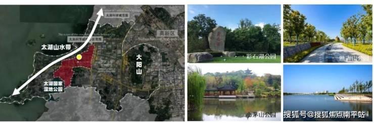【真山真水的自然底色】区域内大阳山、太湖国家湿地公园、太湖山水带环绕,12座山体、34条河道湖泊交织,生态环境优越;已新增和改造绿化约500万平方米,打造彩石湖公园、恩古山公园、小茅山公园、诺贝尔湖公园等公园点缀,为生活增添生命活力!