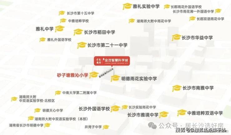 雨花金茂智慧科学城业主配套入读砂子塘雅沁小学,预计于2025年9月开学。预计最大办学规模为60班,可容纳1200人,学校距离项目仅约600米,实现优质教育资源的“零距离”对接(信息来源:雨花教育/长沙晚报等公众号)。
