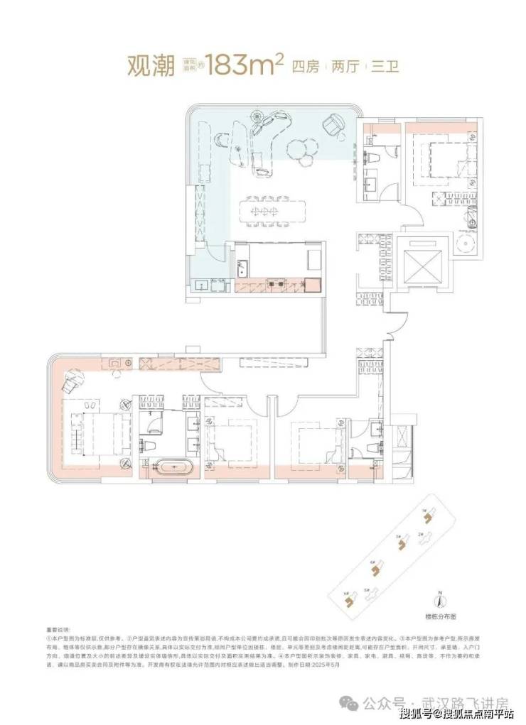 项目只有建面约143㎡和183㎡两个户型,是纯改善楼盘中的豪宅定位。