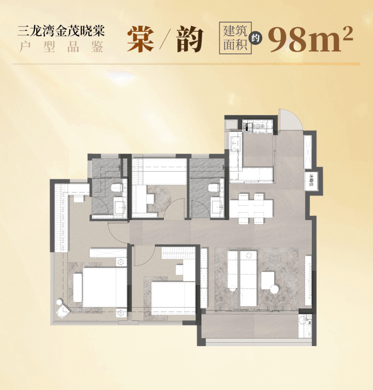 金茂晓棠聚焦纯改善定位,带来 建面约98-142㎡三大主力户型, 不做刚需妥协、只做品质改善,每一款都精准贴合佛山家庭的真实居住需求。