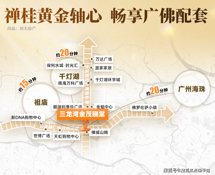 桂澜路串联起千灯湖金融总部, 紧握南海经济大动脉; 三龙湾大道可快速畅达禅城中心城区, 直达亚艺板块、祖庙老城等区域,去往广州海珠也只需约20分钟,地段含金量在主城改善市场中无可替代。