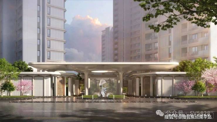 ※ 云栖繁花:近60米长、约7米高的恢宏大门彰显业主尊荣,弧线流畅延展,奢华石材精心点缀,门头采用三重檐“理想之花”设计,层层递进如花瓣绽放,如入繁花流水之境。