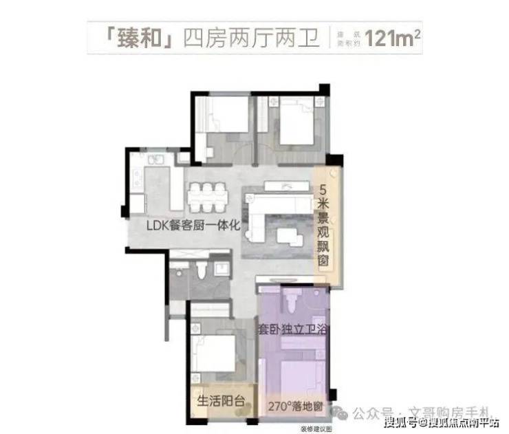 3、121平作为招商最大户型,却是最受伤的,四卧室里两间朝北,典型的反人类短面宽长进深,幸好侧面开窗确保了中间的采光,另外大多数楼盘121平可以选择两梯三户但是在招商却需要承受两梯五户的痛苦。